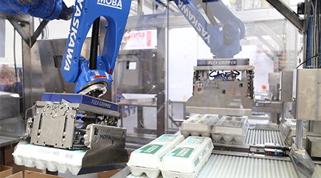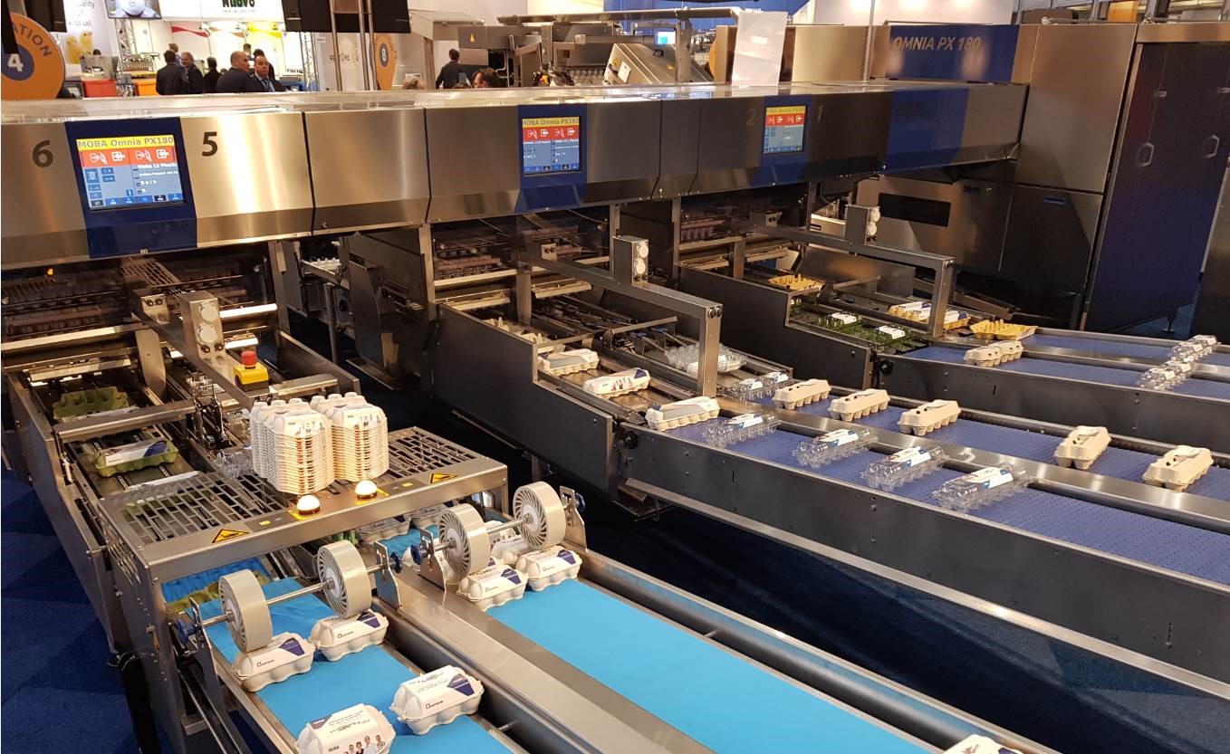 Moba markets the first machine that can not only grade but also automatically pack eggs; the Moba 2000.
